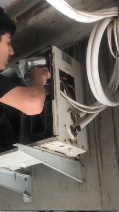 Ils sont venus à deux, a temps il n'était pas loin ils ont fait un bon travail et c'était un peu difficile par rapport à l'emplacement du climatiseur c'était un mur en béton et du fer, mais à la fin le résultat était vraiment satisfaisant et la finition au top