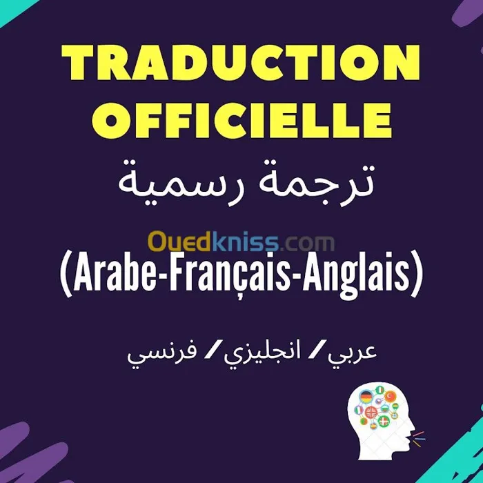 traducteur interprète officiel assermenté Agréé près des cours et tribunaux Traduction de documents à caractère officiel ( jugement, requête, arrêt, décision, arrêté, convention, marché, statut, facture, documents administratifs, juridique, scientifique, technique, médicale, scolaire, manuel d'utilisation, site web........) applelez