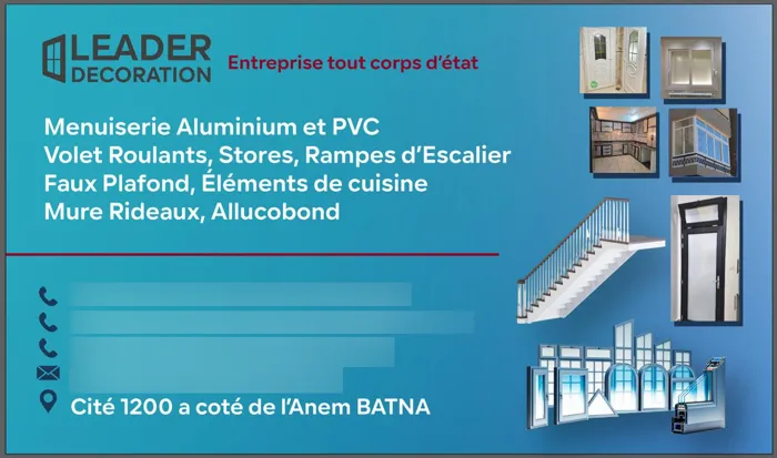 Fort de 8 ans d’expérience dans le domaine de l’aluminium, du PVC et de l’Alucobond, je propose des services professionnels et de qualité, incluant :