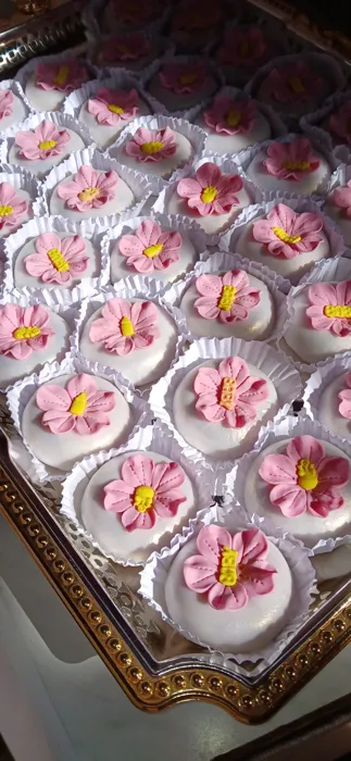 حلوياتك متقونة ماشاء الله وطعمها لذيذ، باين عليك محترفة وتحبّي شغلك. يعطيك الصحة على هذا الإبداع