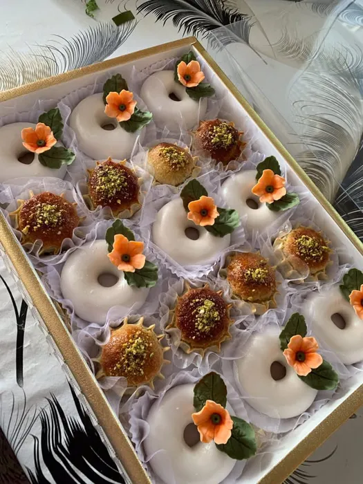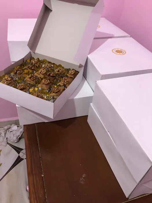 الحلويات كانت لذيذة ومضبوطة من حيث الشكل والمذاق، واضح الاحتراف في الخدمة. ربي يبارك في يديها ويوفقها في عملها.