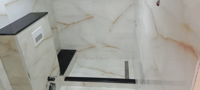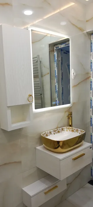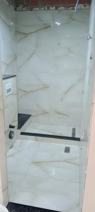 نستعمل مواد عالية الجودة مثل فينيسيو بسيمة أبيض ملكي أو كحل مقاوم للرطوبة، مع تشطيبات دقيقة ومظهر راقي.