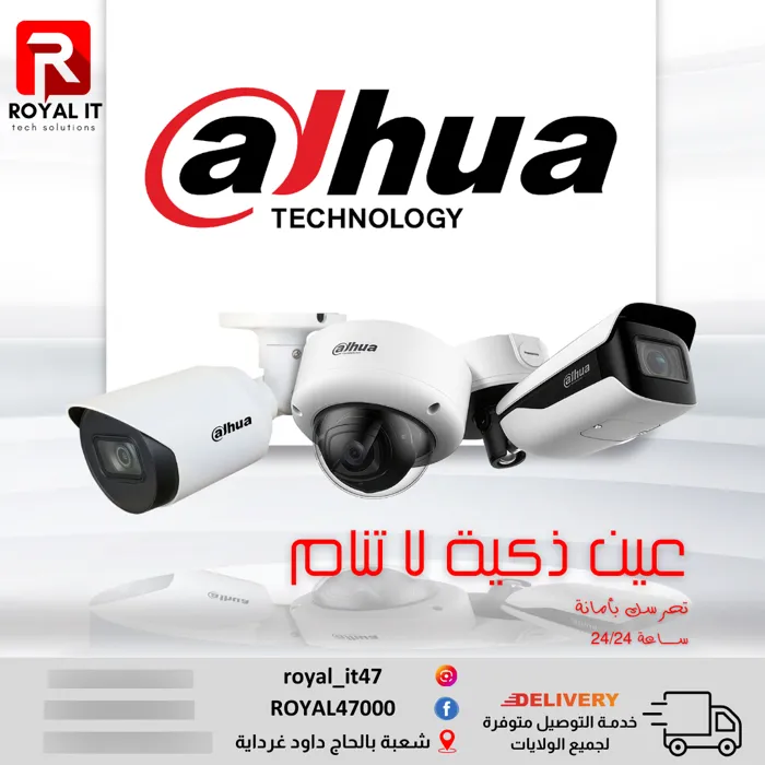 🔹 أنظمة أمنية: تركيب احترافي لكاميرات المراقبة (HIKVISION, DAHUA)، أنظمة الأمن والشبكات. ROYAL IT - متجر الإعلام الآلي وأنظمة الأمن في غرداية خدمات احترافية منذ 2012.