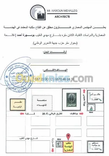 etude d'architecture DOSSIER DE PERMIS ET REGULARISATION Numéro : مكتب دراسات معتمد Service / produit : DOSSIER DE PERMIS ET REGULARISATION -DOSSIER PERMIS DE CONSTRUIRE PLANS ARCHI + GENIE CIVIL 15000 DA -DOSSIER REGUL ARCHI +GENIE CIVIL 15000 DA -SUIVI DE CHANTIER VISTE 3000 DA -PRIX RAISONNABLE SELON TYPE ET MODEL DE VILLA . ملف تسوية البنايات 15/08 بـــ 15000 دج فقط