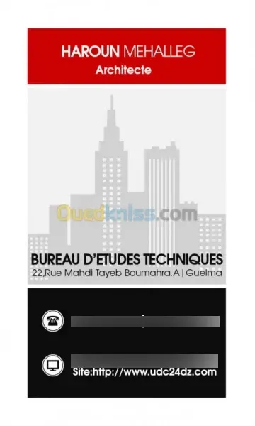 Bureau d'Etudes Techniques|Architecte L'atelier d'architecture et de design (URBAN DESIGN COMPANY) a fondée par l'ingènieur HAROUN MEHALLEG, animant l'architecture et l'urbanisme en Algerie et favorisant incontestablement l'émergence de valeurs et de savoir-faire.. En 2015 l'architecte HAROUN MEHALLEG émet pour la première fois l'idée de créer un atelier d'architecture et de design, installé dans la wilaya de Guelma, il exprime son intention "d'offrir un lieu qui permette à différents spécialistes de travailler côte à côte sur les mêmes dossiers, d'apprendre à se connaître et à se comprendre". L'objectif de l'UDC est de créer une structure capable de couvrir l'ensemble des activités urbaines et architecturales. Conscients qu'il existe des liens intrinsèques entre les études d'urbanisme et le projet d'architecture, les membres de l'UDC veulent démontrer que le processus de construction nécessite une collaboration de tous les techniciens de l'acte de bâtir. Ce mode de travail pluridisciplinaire est inédit.