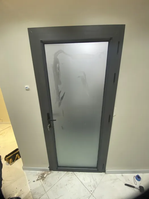 * Porte SDB ouvrant a la francaise 1 vantail avec lame pvc et panneau sandwich.