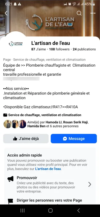 Je cherche un plombier.Es Senia.6 km