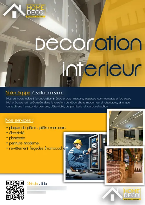 Nos services incluent la décoration et la rénovation intérieure pour maisons, espaces commerciaux et bureaux.