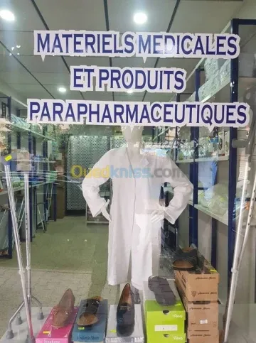tensiometre, fauteuil roulant , chaussures orthopédiques , ceintures orthopédique , matériels de rééducation , antiseptiques, boites a pharmacies , blouses médicales et tenues de blocs , produits para-pharmaceutique,.........