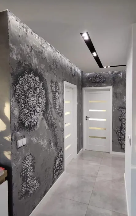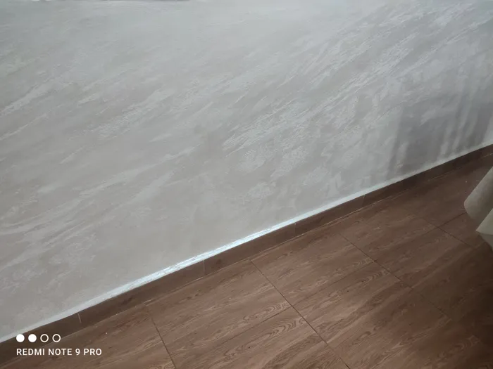 Enduit satiné sur mur accidenté.