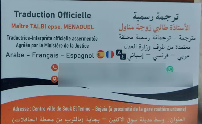 أحتاج تسعيرة لترجمة فرنسي عربي.Sidi Mehamed.1 km