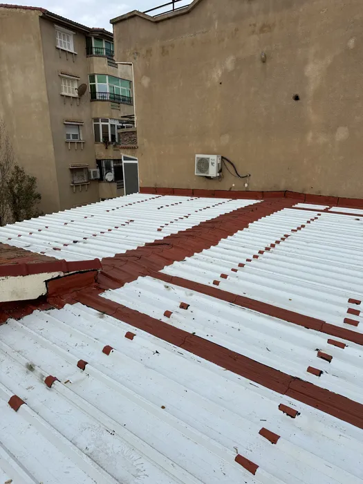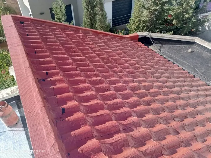 Pose pax aluminium rouge tuile sur une partie de toiture.El Mouradia.5 km