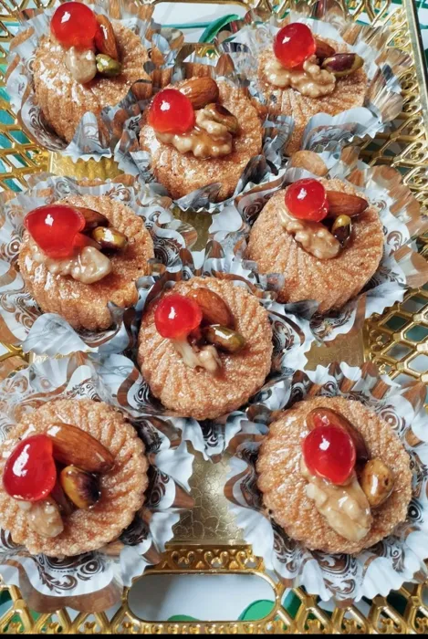 يعطيك الصحة على الحلويات، كانت بنينة ومتقونة، باين فيها التعب والذوق. ربي يباركلك ويزيدك من خيرو.